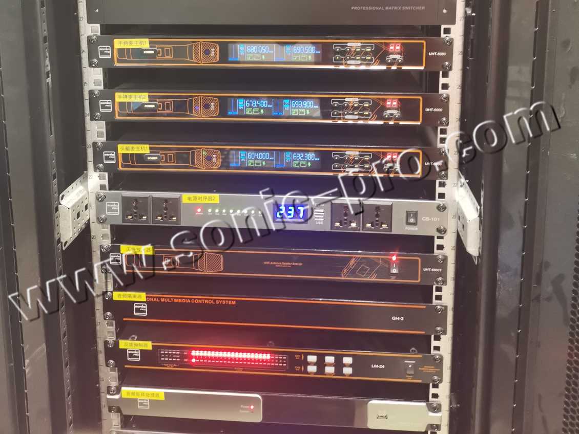 我们还配置了2只报告,演讲使用的有线鹅颈话筒,以及报告、演讲、流动使用的无线手持和头戴话筒。