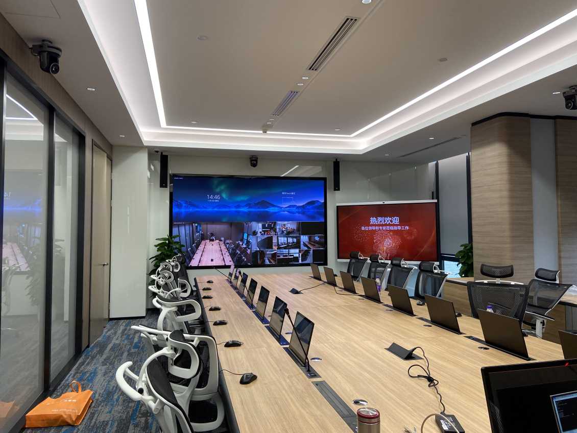 指挥中心的会议室用于平时的报告与会议演讲,我们选用了四只广西TH系列线性音柱,其独特的线性声源结构,声音均匀,保证现场有良好的声压级,语言清晰度和覆盖范围都非常优异。