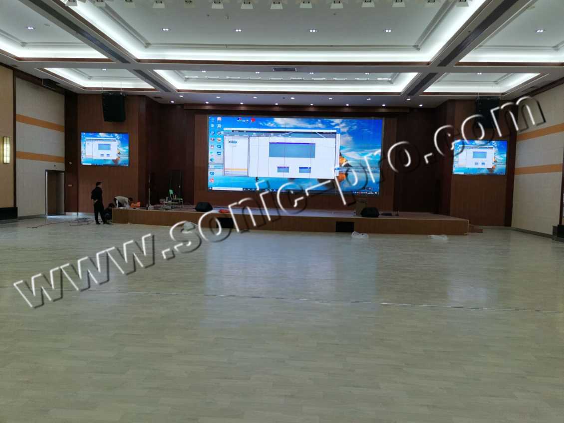 为了保证声音的直达声,我们在观众席配置了六只辅助补声音箱,壁挂在中后场的墙壁上,保证声场覆盖更均匀。