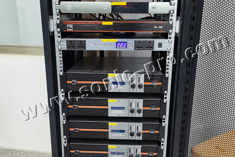 除了音箱之外,我们还配置了功放,电源时序器,音频隔离器,数字音频矩阵处理器,由斯尼克品牌提供。