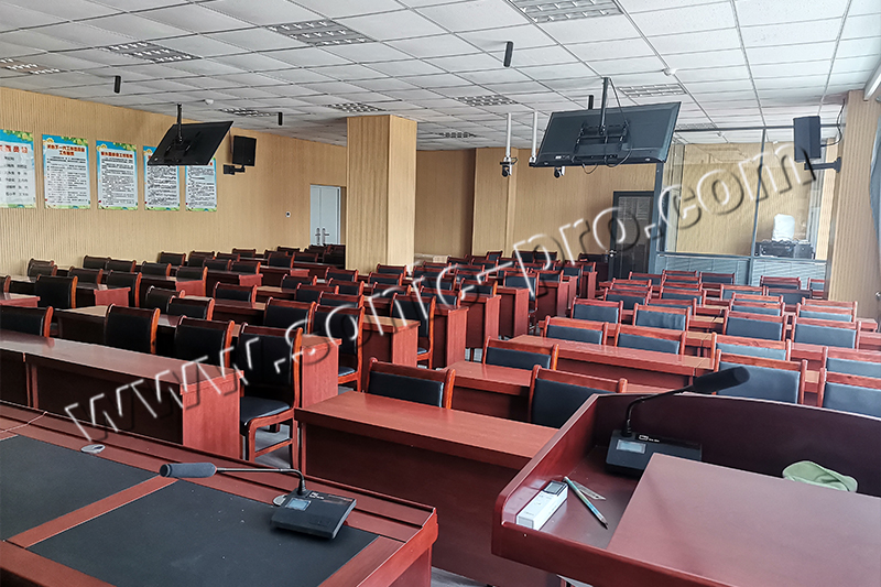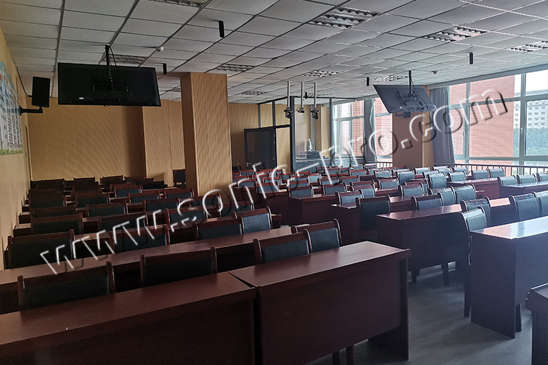 我们采用的是半集中式布局,这种布局方式可以解决声像一致性的问题,同时又大大的提高了全场的均匀度和直达声,有效的提高了语言的清晰度。