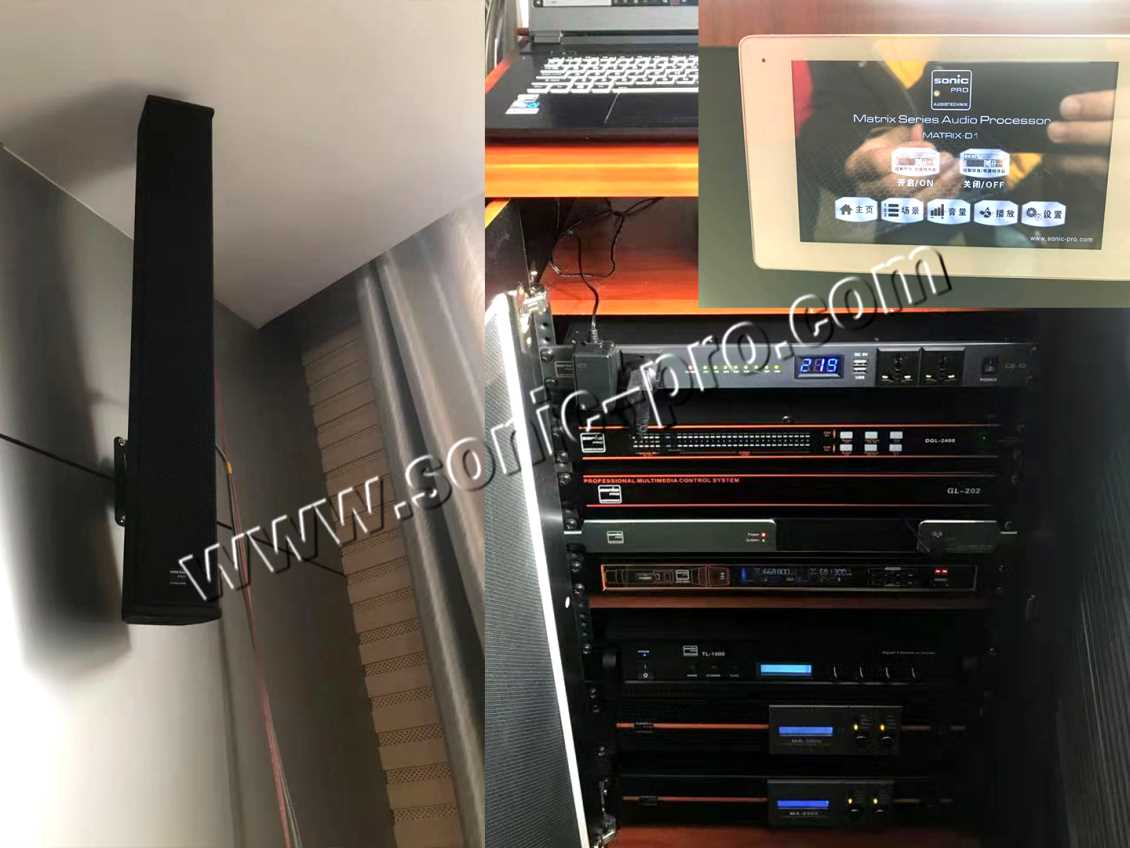 广西音箱:会议室采用线性音柱进行扩声,高强度桦木夹板,喇叭单元可以和木箱体有良好的共振,使声音更饱满。