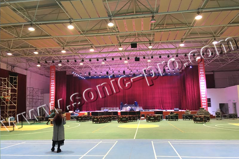 本项目体育馆作为学校师生重要的活动、赛事、教学场所,配置一套专业的、高品质的音响扩声系统显得尤为重要。用户对效果的极致追求,使得音响品牌必须经过层层严格的筛选,最终SONIC PRO音响脱颖而出,整个音频扩声系统全部采用SONIC PRO产品。