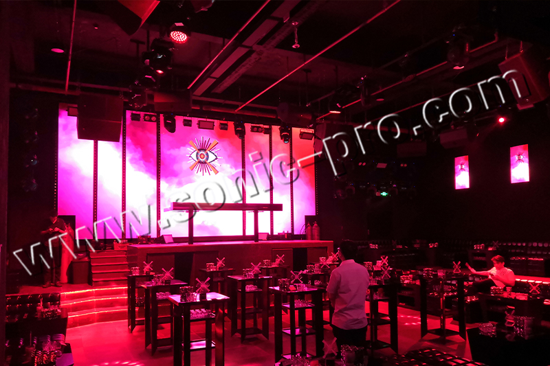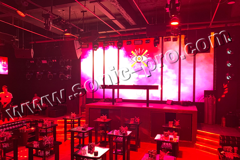 功放采用MA系列,独特的LCD液晶工作显示面板设计,监控显示工作温度、工作时间、工作电压,为音响师判断设备工作状态提供可靠数据。广西周边采用GL-202音频隔离器、CS-10电源时序器,能应对各种需求。 广西调音台采用MATRIX24.8,机器自带2组数字效果器,每组具有12个效果选择,并可实现多种参数调节,每组效果可保存104个效果场景。 震撼的声音动态和稳定的效果得到了客户高度认可,现场声音具有强大爆发力。完美的音响效果加上现场绚丽的灯光,为消费者提供一个绝佳的娱乐休闲场所。