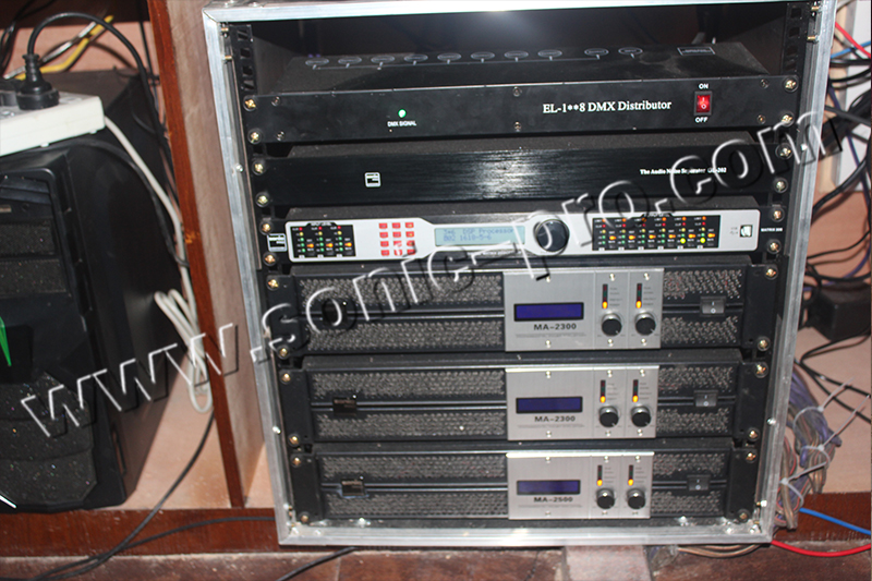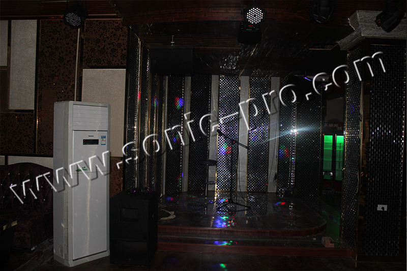 而且,同轴设计使低频/高频具有完全重叠的扩散特性,避免了传统的号筒高音和低频扬声器单元组合来说典型极性波瓣效应的弱点,最终的结果自然是带来录音棚级的监听音质;低音音箱采用SUB-15A音箱,使现场声音更具有爆发力;广西功率放大器采用具有国家专利设计的MA系列功放,这款功放定位于娱乐场所长时间高稳定工作,而且自带LCD显示屏,能对设备工作状态实时监控(工作模式、工作温度),音响系统同时搭配的还有自带效果处理的MX系列广西调音台和数字化周边处理设备及广西话筒,完美的音响效果加上现场绚丽的灯光,为消费者提供一个绝佳的娱乐休闲场所。