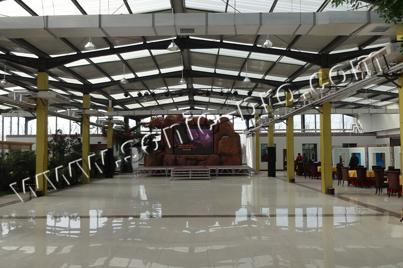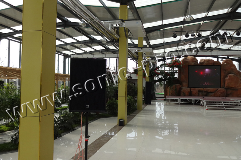 酒店宴会厅使用的音响设备由SONIC PRO音响倾力为其量身打造,此次音响系统的搭建采用了4只双15寸音箱TB215、2只单15寸音箱TB15,TB系列音箱忠实还原语音以及音乐扩声,其具有丰富的吊挂点位,且在音箱底部设计一个35mm的支架孔座,箱体由15mm高密度板构成,表面?为耐磨的黑色点纹防水环保水性油漆,后接线板两个并联的NL4MP芯插座方便连接,黑色内覆透声声学海绵结合穿孔铁网保护音箱单元,面网固定采用内六角平面螺丝整体美观大方。配上SONIC PRO音响最新开发的定位于娱乐工程、户内外演出全方位应用的广西功率放大器TD-600、TD-800,大功率,多功能,高质量,音色优美及稳定性于一身的专业功率放大器配合12路广西调音台MX12C、为整个音响系统提供了高品质的音频控制以及良好的保证。再配备SONIC PRO音响专门为搭配SONIC PRO音箱而专门开发的广西音频处理器MATRIX306等周边设备,UHF-5000演出级的话筒,为造访该酒店的客人提供了一场听觉盛宴!