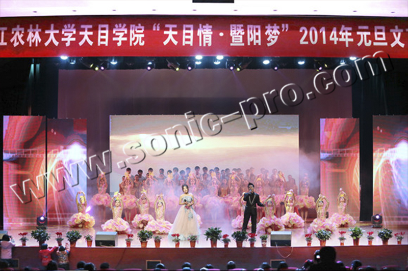 此次浙江农林大学暨阳学院的大型报告厅扩声系统由SONIC PRO音响提供。报告厅选用LA线性