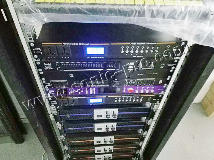 数字广西音频处理器(MATRIX306)、数字前级处理器(KV-9900)、音频隔离器(GL-202)、反馈抑制器(DGL-2408)、电源时序器(CS-10)等设备。