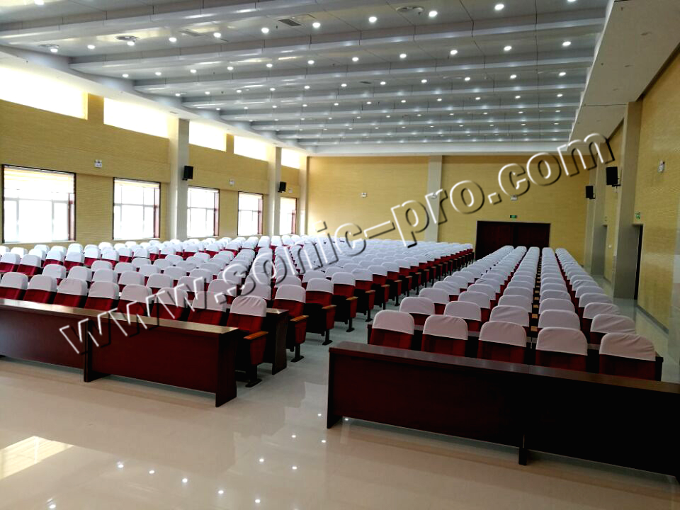 报告厅:主扩声音箱、返听音箱、中后场辅助音箱全部采用TZ同轴系列,主扩声采用2只18寸同轴音箱(TZ-18),返听采用2只12寸同轴音箱(TZ-12),