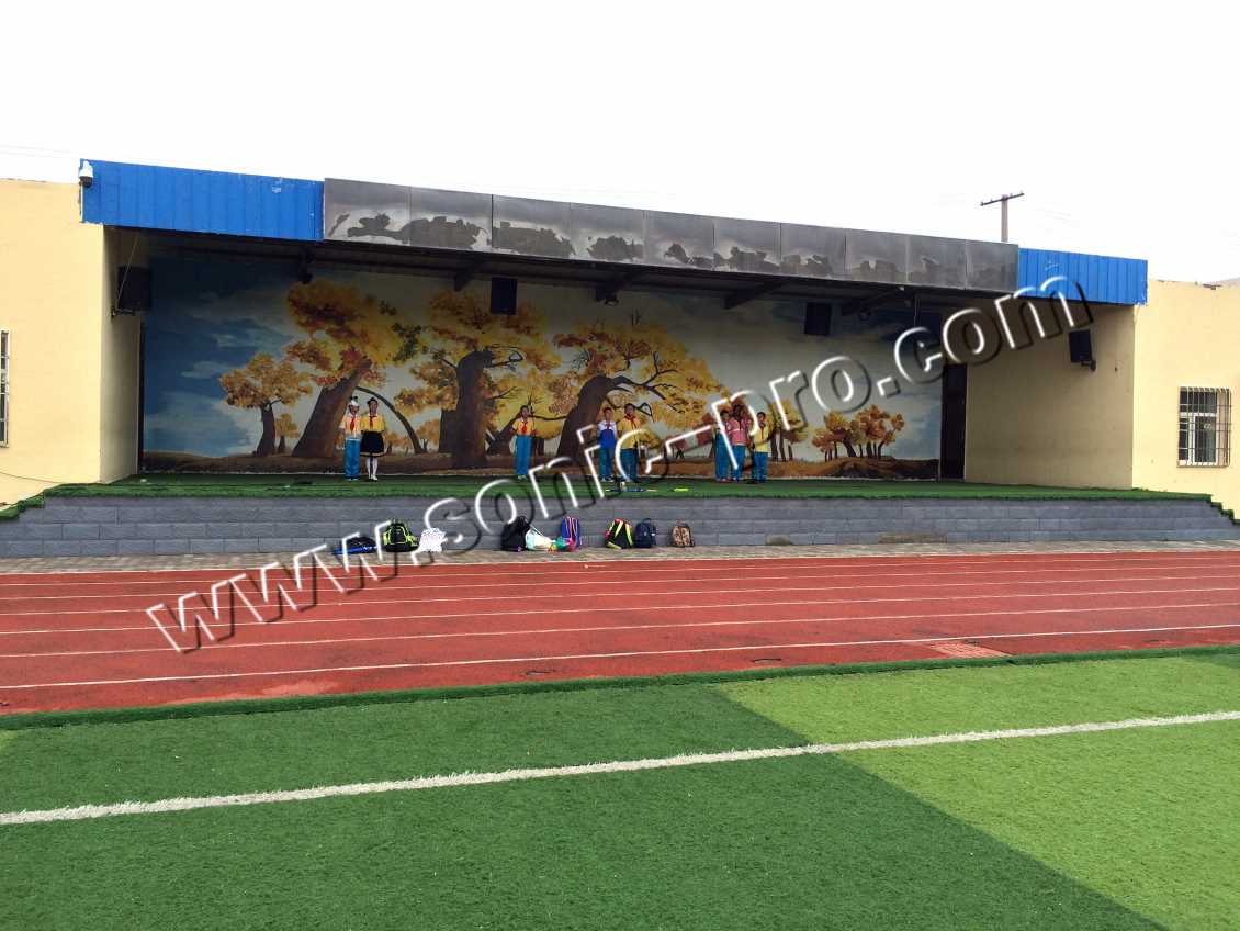 阿拉善六小校方表示操场的音箱扩声优于期待效果;