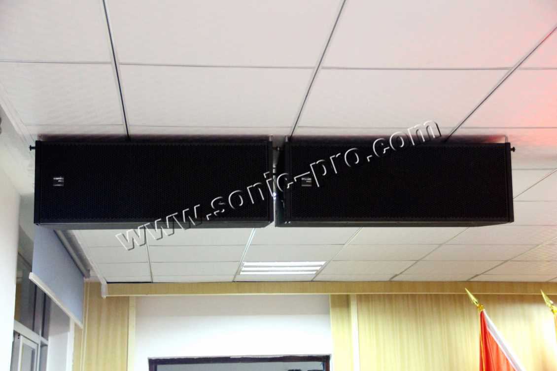 此次LA线性的吊挂方式与以往有些不同,由于报告厅的楼层比较低矮,导致了线性音箱不能竖向吊挂,所以采用了横向并排的吊挂方式,实用且灵活。