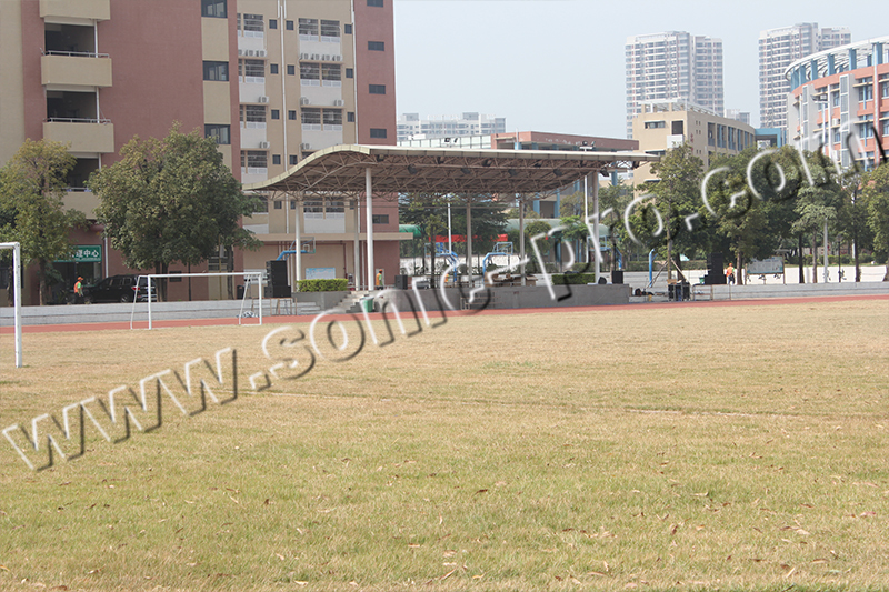 SONIC PRO音响全套产品助力北京师范大学东莞石竹附属学校十周年校庆暨师生表彰大会现场,音箱采用吊挂安装的LA线性音箱(LA-210),它具有较大的动态容量,能提供干净、连续、精确的高品质声音;应用相位校正以及专利线性号角技术,能忠实还原规定范围内频谱信号,音箱上装备精密的铝合金吊挂系统,音箱与音箱之间的连接角度可通过吊装件来调节,采用最新人体工程学和机械设计,使整个系统安装简易快捷并保证了安全。低音音箱采用SUB系列(SUB-218),再加上同轴系列音箱(TZ-18),使声音更深沉、具有爆发力,更适合表彰大会现场氛围。