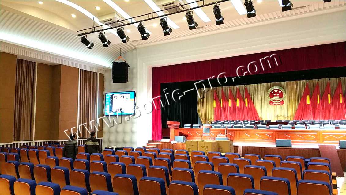 项目的应用场所是一个县政府的礼堂,面积大概为400平方米,主要用于传达上级指示以及学习重要会议的精神,极少涉及到表演需求,因此满足主要的大型会议扩声兼顾表演扩声需求即可。