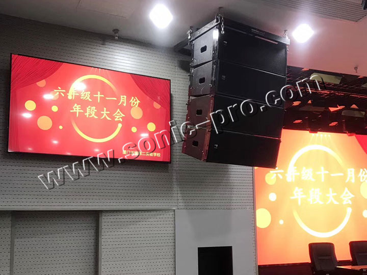 此次项目是该学校的多功能厅音响扩声项目,为了提高办学质量,校方决定采购一批音响系统用于平时会议和演出时使用,学校主要采用了SONIC PRO(斯尼克)音响LA系列线性音箱及MF系列专业舞台返听音箱等主要扩声设备以满足日常的扩声使用。