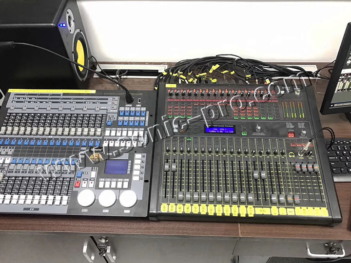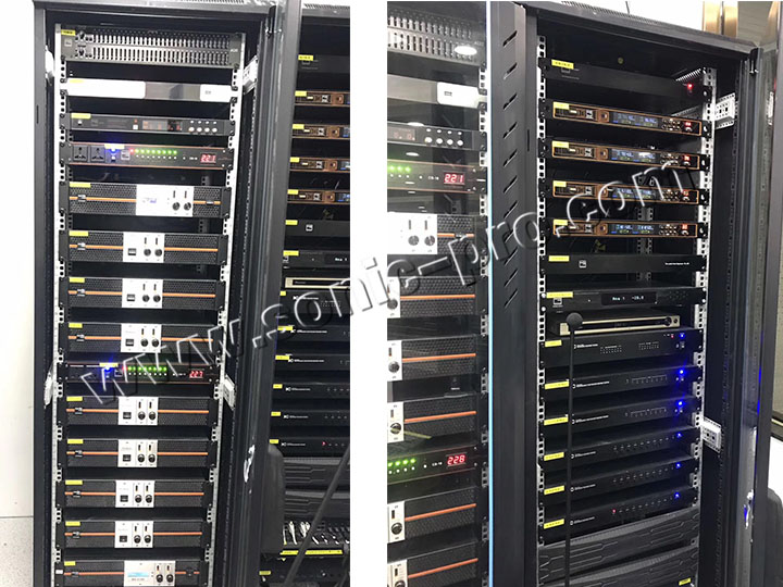 广西调音台GL-32,加上数字音频矩阵处理器MATRIX808,以及数字前级处理器KV-8800,音频隔离器GL-202,均衡器AC03,电源时序器CS-16。