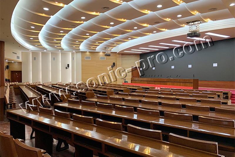 根据报告厅的实际情况,对音质、隔声、室内噪声控制等方面进行建筑声学设计。以自然声为主,在满足响度的前提下兼顾会议、演讲报告。
