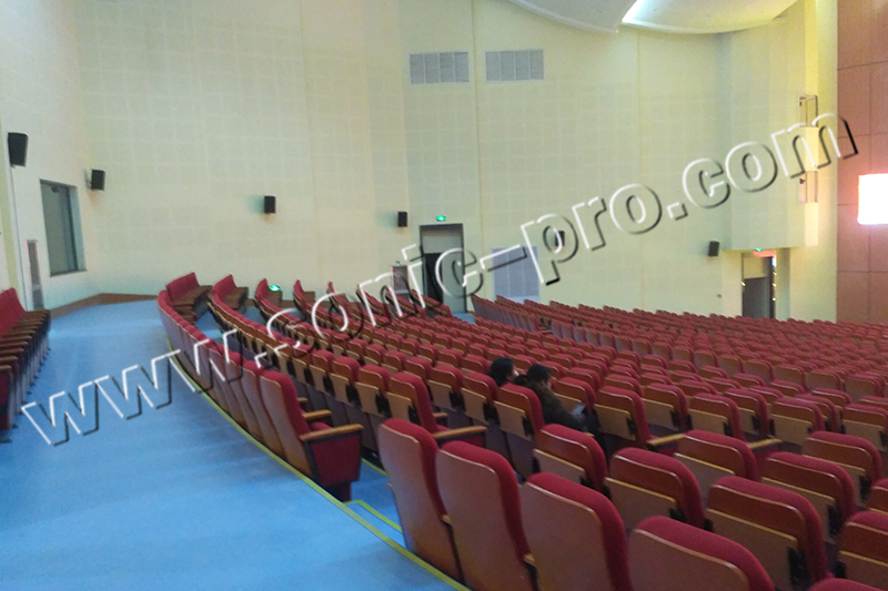 报告厅主要进行语言人声信号的传输兼顾其它影音资料音频信号的播放,在设计时重点考虑扬声器的分布以及声压覆盖的均匀,系统信号间的相互干扰的处理。做到各种音频信号播放清晰不混浊,并且高\中\低声场明晰。