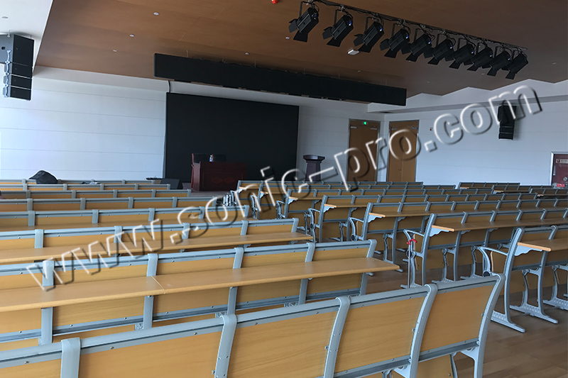 音响设备是报告厅的一个重要部分。通过对报告厅的布局环境分析,对音响设备进行合理的布置与连接,并安装以下的音响设备,使观众能感受到声源的真实存在,达到高保真重放的扩声要求。