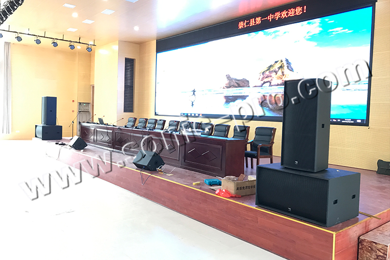 该报告厅是崇仁第一中学的一个综合性报告厅,也是平时召开各种类型的报告演讲、会议以及文艺表演的基本场所,其音响系统功能要求以满足歌舞文艺演出、会议、学术报告、视频播放等多功能使用要求而设计的。