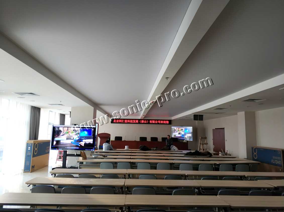 会议室扩声,重要的是让听众听到和听清发言者的讲话内容,不用关心声音是从哪里传过来的,这就要求音响系统有均匀的声场。主音箱加补声音箱的方式,显然很难实现现声场的均匀,均匀布置壁挂音箱和天花喇叭,对提高整个会议室声场的均匀度、清晰度和传声增益有非常显著的作用。