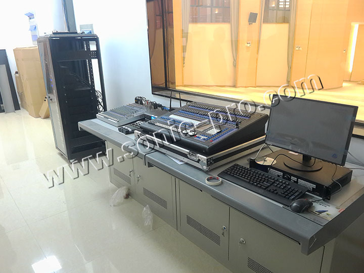 广西音频处理器(MATRIX 408)、均衡器(AC03)及具有重力感应自动静音防啸叫功能的无线手持话筒(UHF-1000)等设备,使整个扩声效果达到安全稳定的状态。