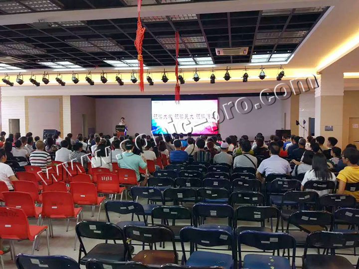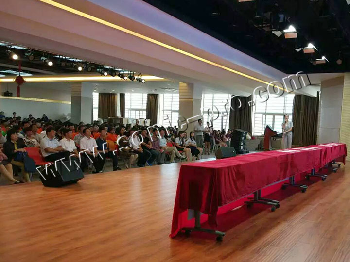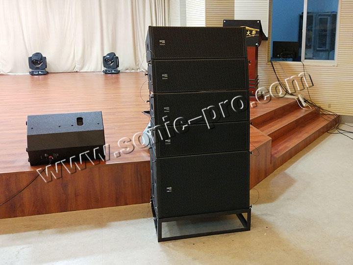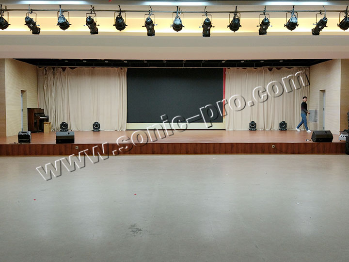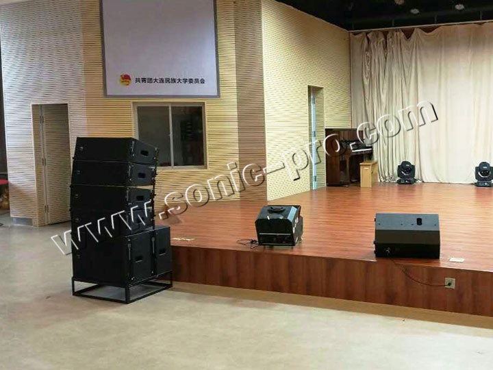 主扩采用8只LA系列双8寸线阵音箱(LA-208),线阵次低音采用2只单18寸吊挂低音(LA-118S),LA系列线阵音箱为高精度线性阵列扬声器系统,它具有较大的动态容量,能提供干净、连续、精确的高品质声音,具有高质量单元配置,专利线性号角,音质优美,投射精确等特点。舞台返听音箱采用2只TZ-12音箱。功放全部采用具有国家专利设计的