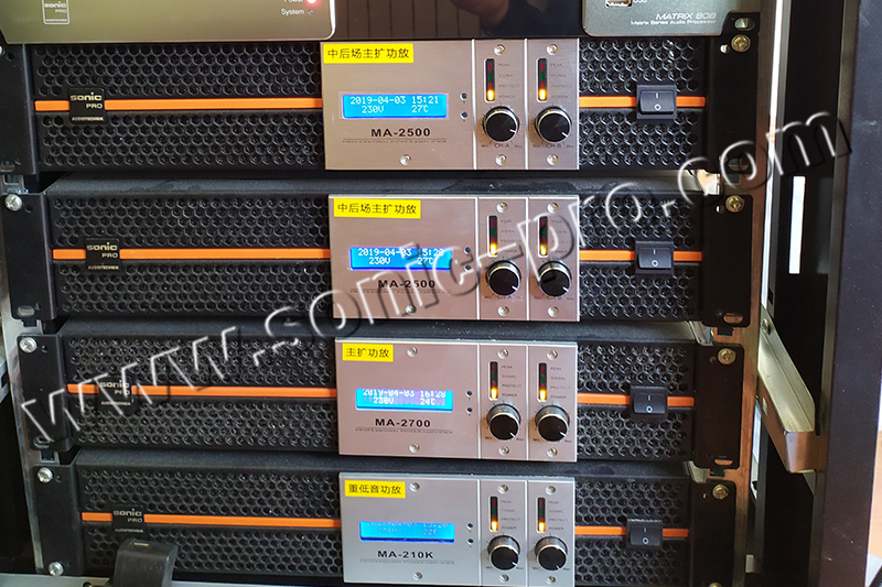 MA系列功放:独特的LCD液晶工作显示面板设计,监控显示工作温度、工作时间、工作电压,为音响师判断设备工作状态提供可靠数据。