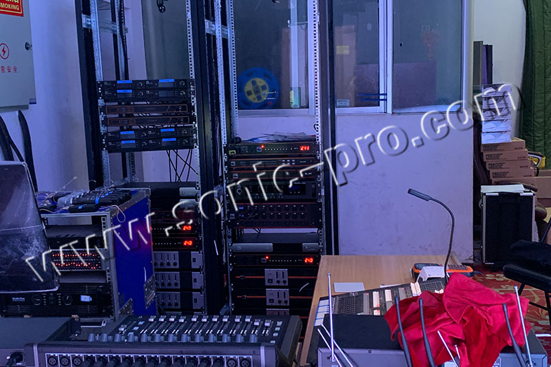 广西调音台、MATRIX404数字音频矩阵处理器、CS-10电源时序器、DGL-2408反馈抑制器、GL-202音频隔离、AC08效果器,其强大的处理功能能应对系统需求。